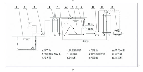 注:溶氣水回流比按30%設(shè)計(jì);水力表面負(fù)荷:3~6m3/m2˙h;停留時(shí)間:15~30min。